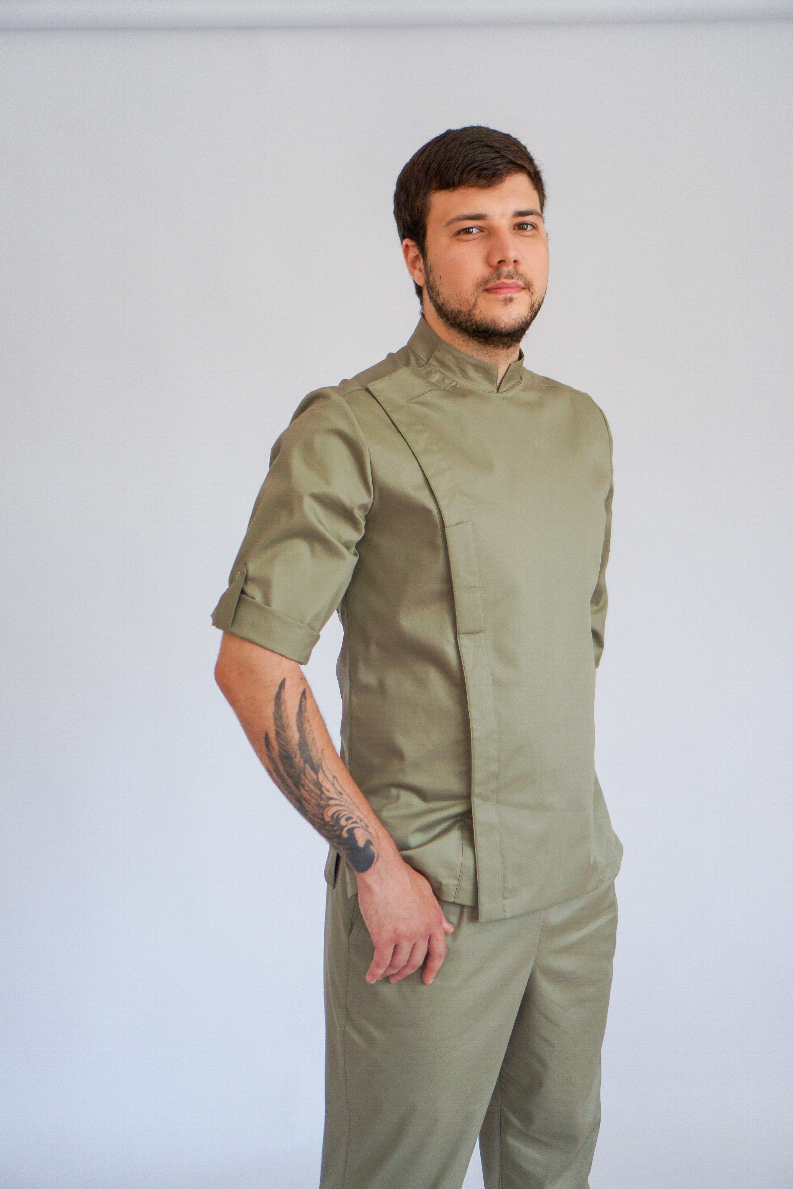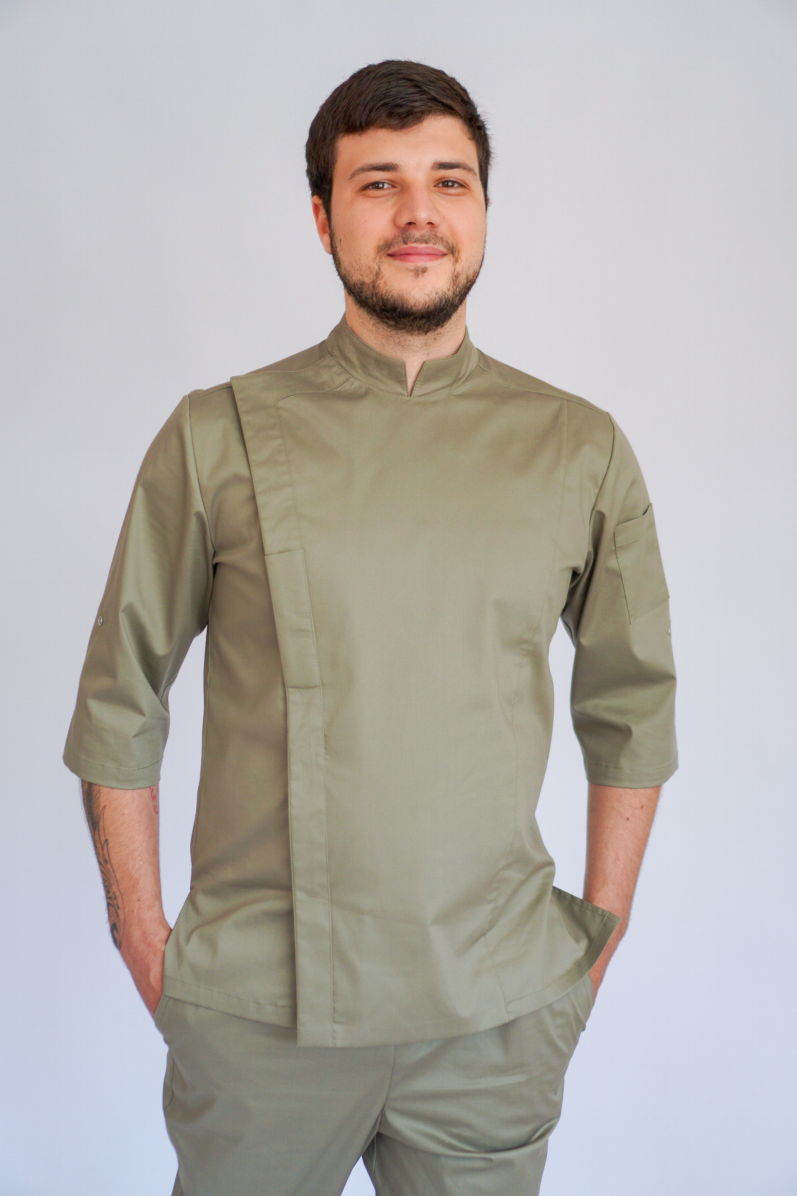 Китель поварской.Воротник стойка.Рукав с регулировкой на 3/4.Застежка кнопки.